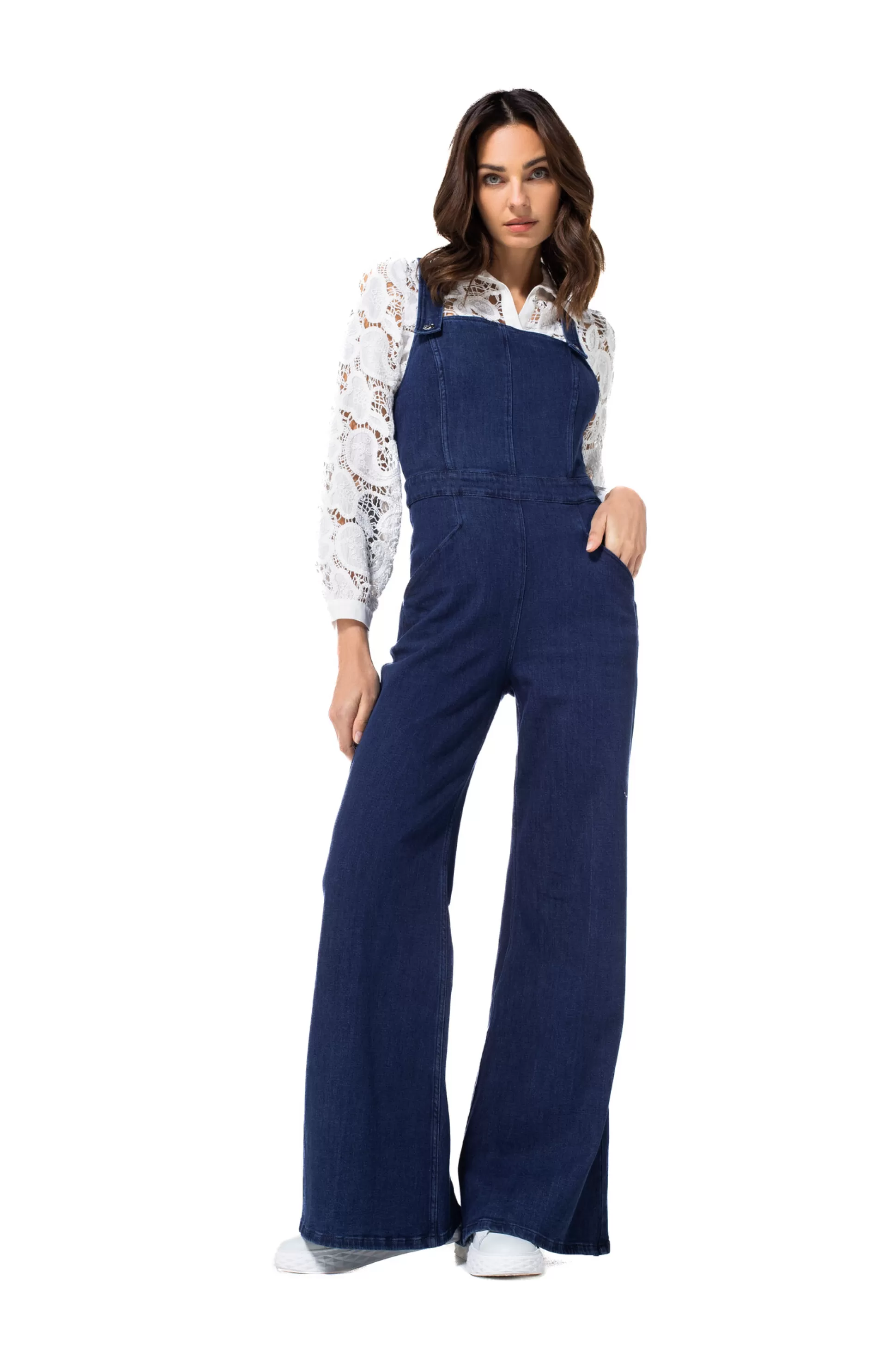 Comfortable Overalls In Jeans, Wide Leg &Nbsp;Zipper in side seam Side pockets on the front Sembroidered pockets on the …